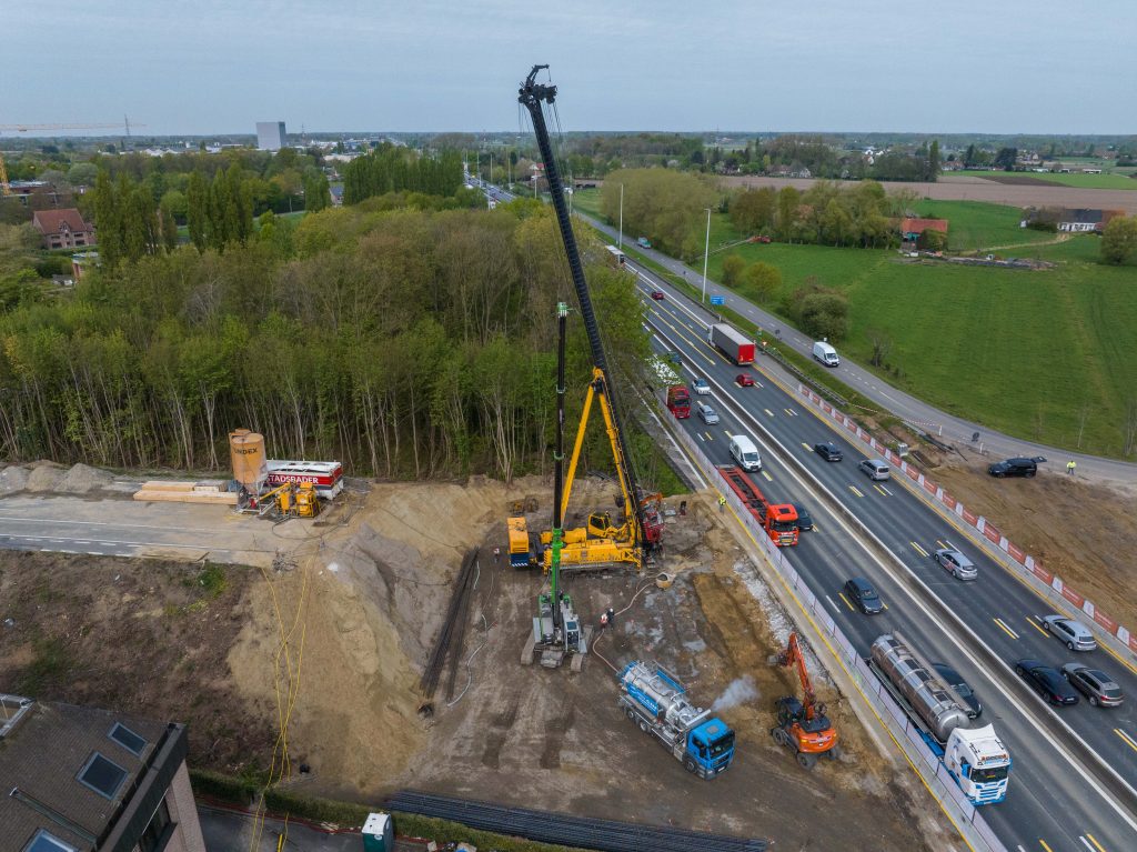 De ruim 70-jaar oude brug over de E40 is de verbindingsweg tussen Drongen en Baarle, de brug is nu aan vernieuwing toe. De sterk verouderde brug wordt volledig afgebroken en vervangen door een moderne versie met brede fi etspaden en een volwaardig voetpad. De Fundex Piling Group zorgt voor de funderingspalen voor de nieuwe brug die in het voorjaar en de zomer van 2025 gebouwd wordt. Aan beide kanten van de brug worden 59 palen, met twee machines geboord.